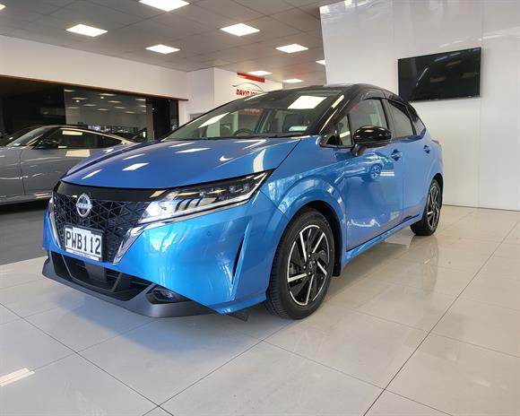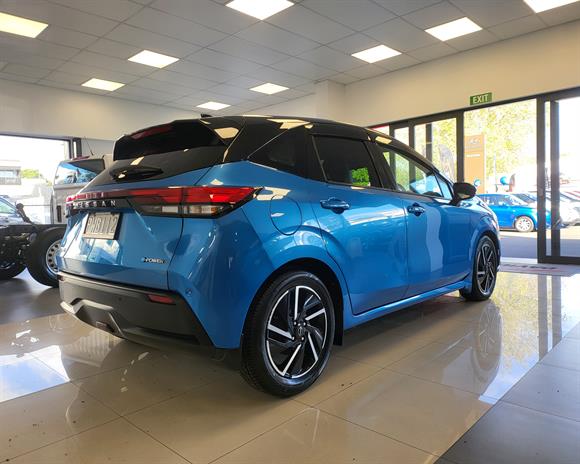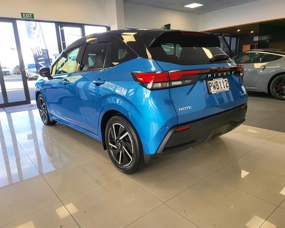 Step into the future of driving with this sleek 2021 Nissan Note E-Power, finished in a vibrant blue with a contrasting black roof for a sporty, modern look. With just 17,437 km, this low-mileage hybrid hatchback offers electric motor performance backed by petrol charging—no plug-in required!Feature Highlights: